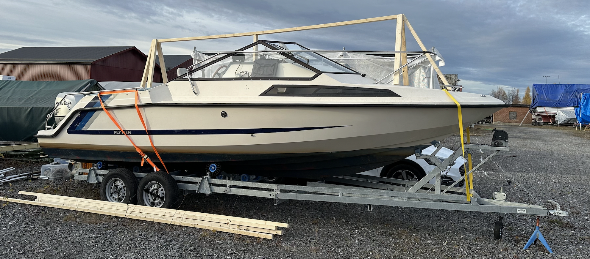 I spent the day building supports for a tarp to cover my boat. I'm not too sure of how this quite sharp wooden scaffolding will work though, but it seems fair to give it a try at least. Last year I used a quite high systems of aluminum beams which partly broke during a storm and even ripped the tarp in multiple places. This year I'm going for a more minimal approach but I'm worried the sharp edges will still be rough on the tarp. As long as we're keeping the boat outdoors, it will get beaten by rain, snow and very harsh winds. Once the snow falls, the tarp will have to keep from breaking under that weight.
